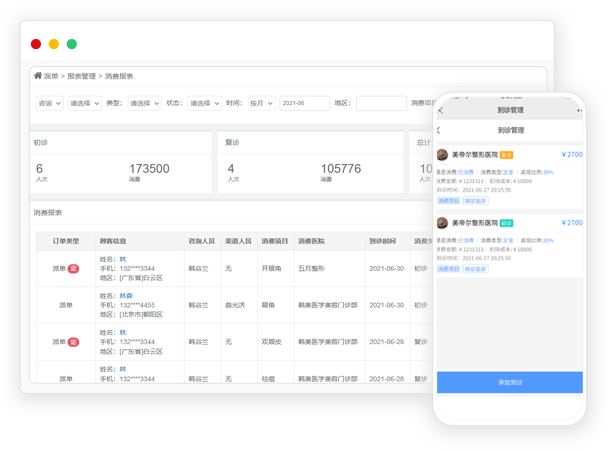 線索管理(lǐ),跟進顧客與消費(fèi±>)備注,消費(fèi)報(bào)表與對•↓α§(duì)賬